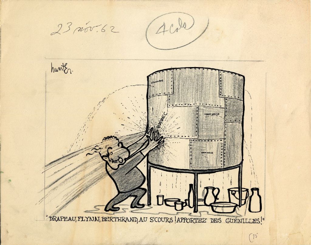 [Diefenbaker:] " Drapeau, Flynn, Bertrand, au secours! Apportez des guenilles! "