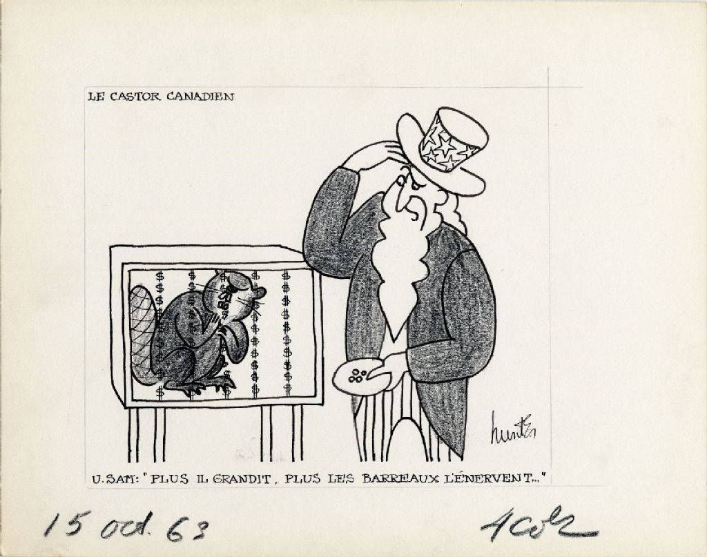 Le castor canadien. U. Sam: " Plus il grandit, plus les barreaux l'énervent…"