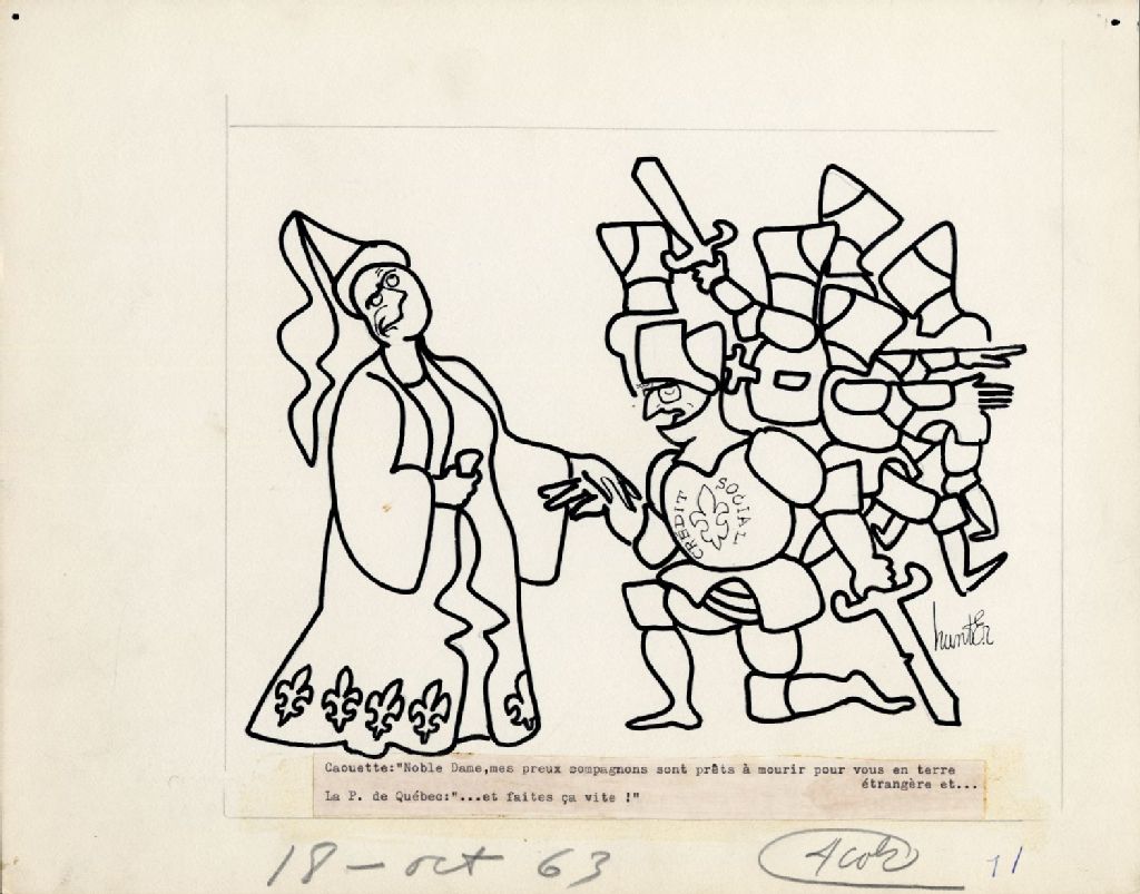Caouette: " Noble Dame, mes preux compagnons sont prêts à mourir pour vous en terre étrangère et … La P. de Québec: " … et faites ça vite! "