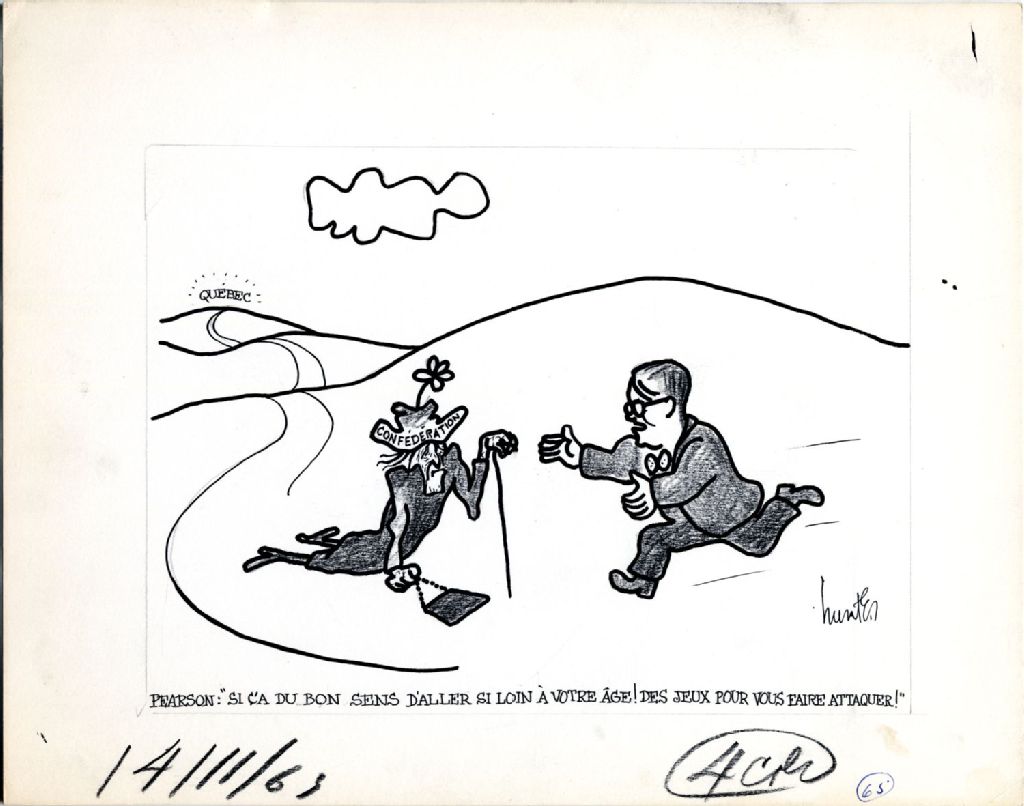 Pearson : «Si ç'a du bon sens d'aller si loin à votre âge! Des jeux pour vous faire attaquer!», 14 novembre 1963, Archives nationales à Québec, Fonds Raoul Hunter, (03Q,P716,S1,P63-11-14), Raoul Hunter.