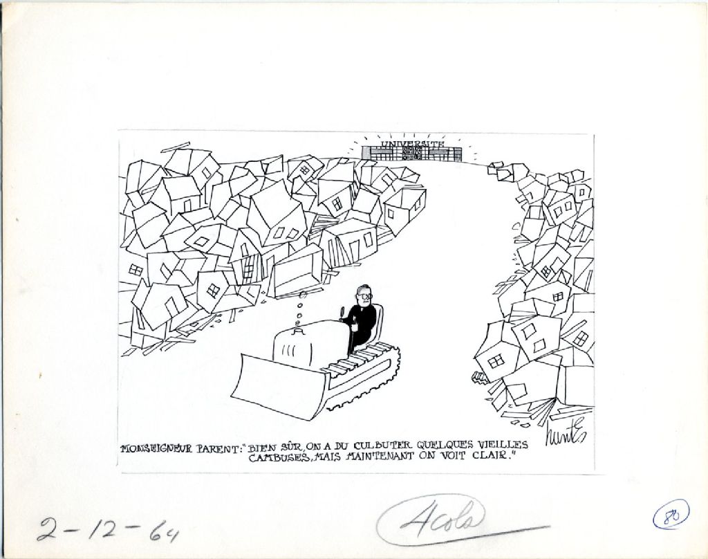 Monseigneur Parent : «Bien sûr, on a du culbuter quelques vieilles cambuses, mais maintenant on voit clair.», 2 décembre 1964, Archives nationales à Québec, Fonds Raoul Hunter, (03Q,P716,S1,P64-12-02), Raoul Hunter.