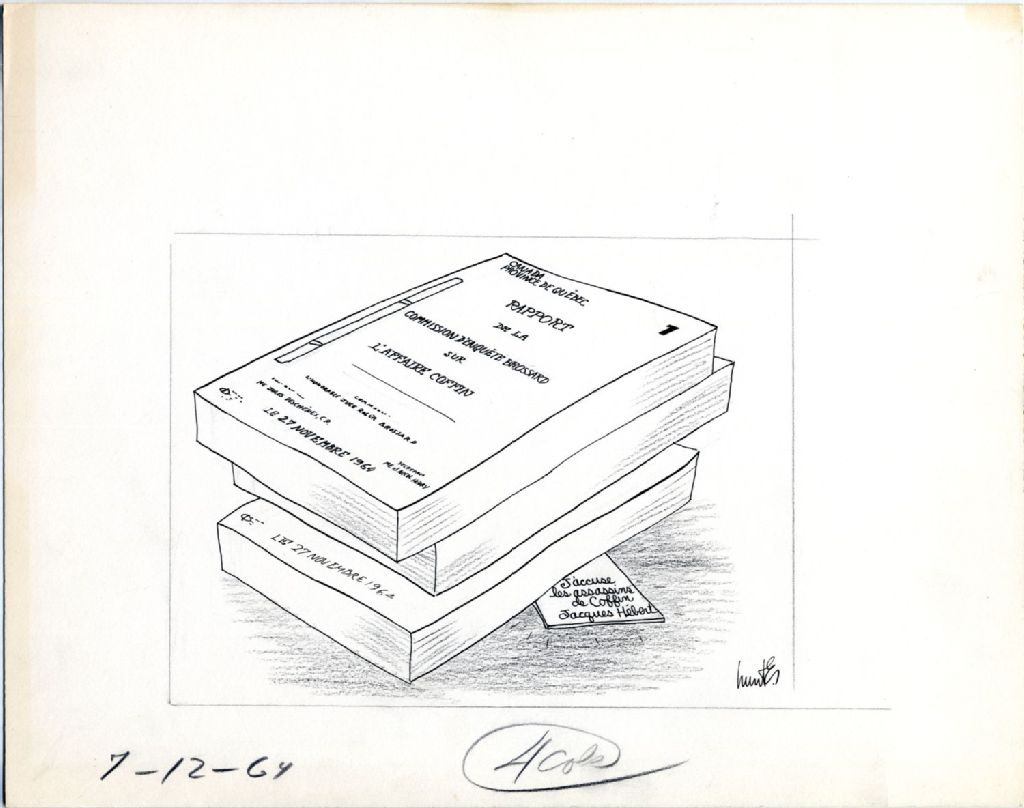 Canada. Province de Québec. Rapport de la commission d'enquête Brossard sur l'Affaire Coffin par l'honorable juge Roger Brossard, 27 novembre 1964, 7 décembre 1964, Archives nationales à Québec, Fonds Raoul Hunter, (03Q,P716,S1,P64-12-07), Raoul Hunter.