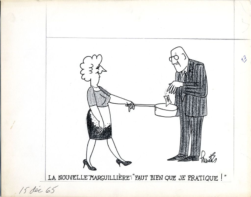 La nouvelle «Marguillière» : «Faut bien que je pratique!», 15 décembre 1965, Archives nationales à Québec, Fonds Raoul Hunter, (03Q,P716,S1,P65-12-15), Raoul Hunter.
