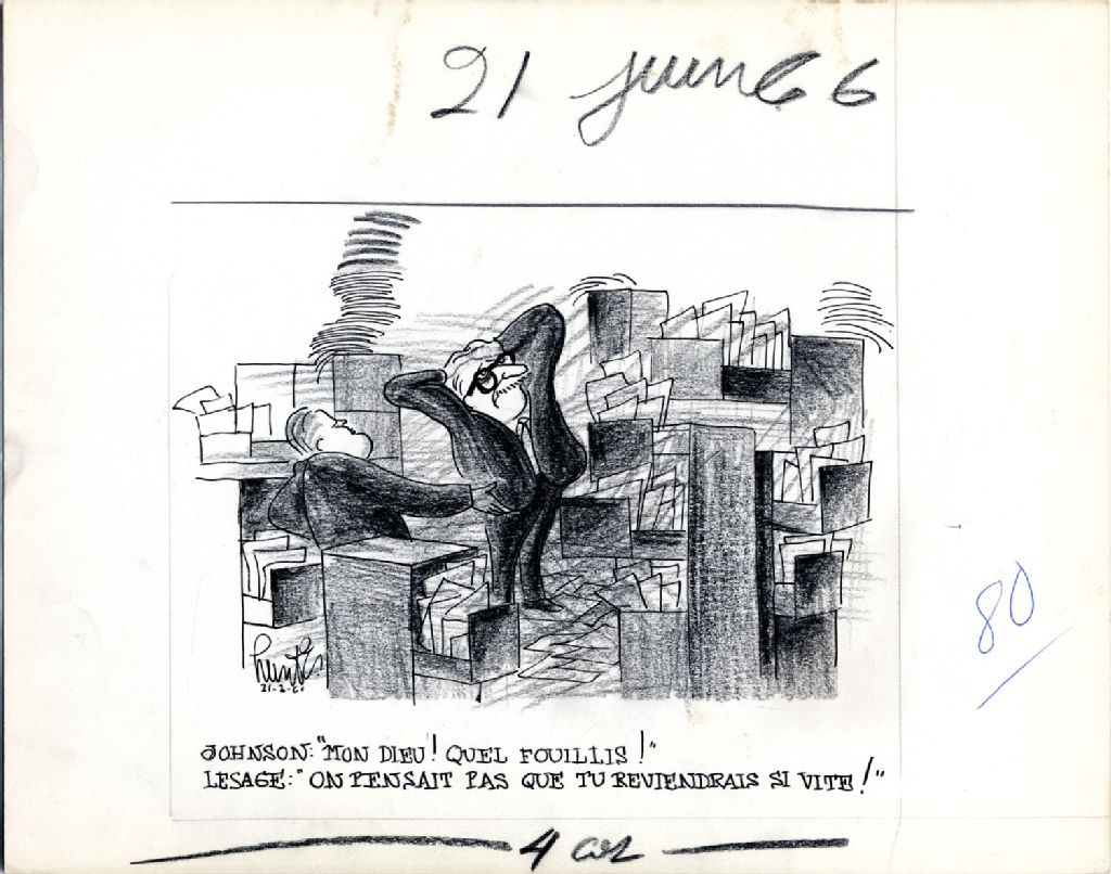 Johnson : «Mon Dieu! Quel fouillis!» Lesage : «On pensait pas que tu reviendrais si vite!»