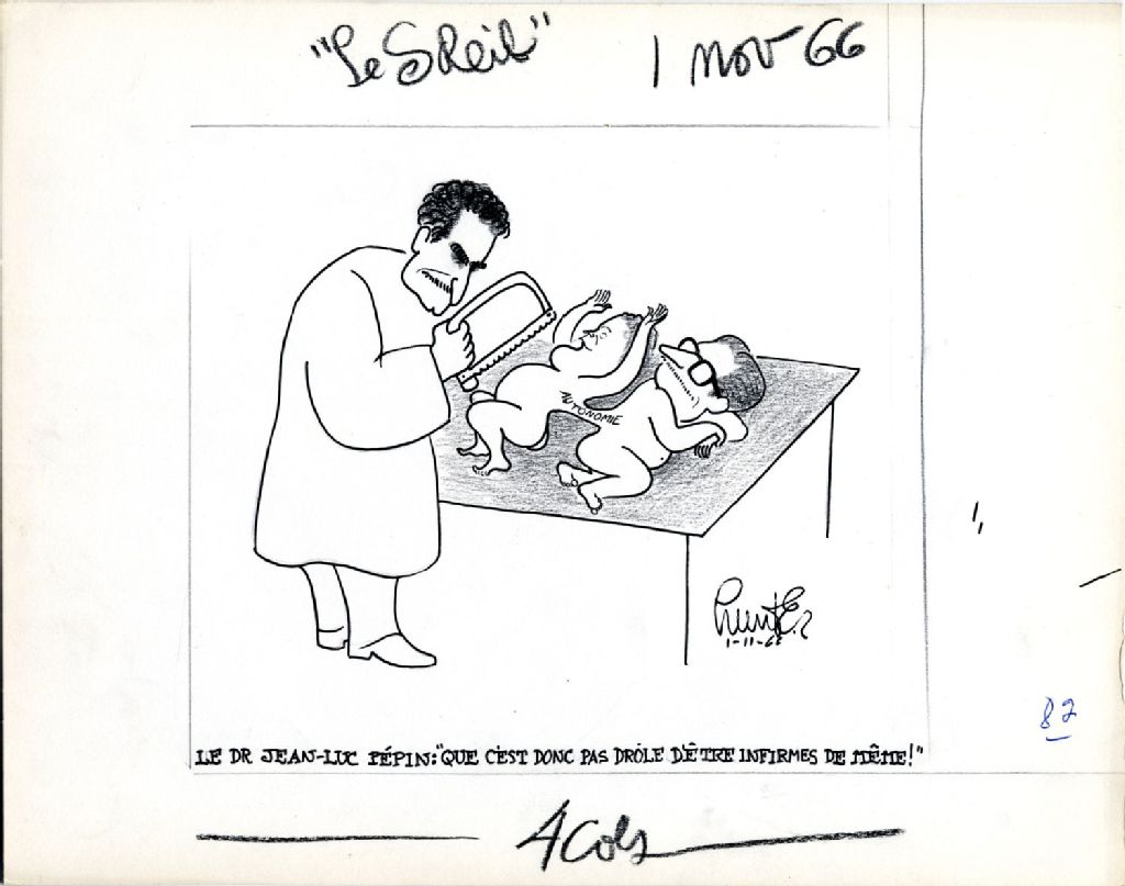 Le Dr Jean-Luc Pépin : «Que c'est donc pas drôle d'être infirmes de même!», 1er novembre 1966, Archives nationales à Québec, Fonds Raoul Hunter, (03Q,P716,S1,P66-11-01), Raoul Hunter.