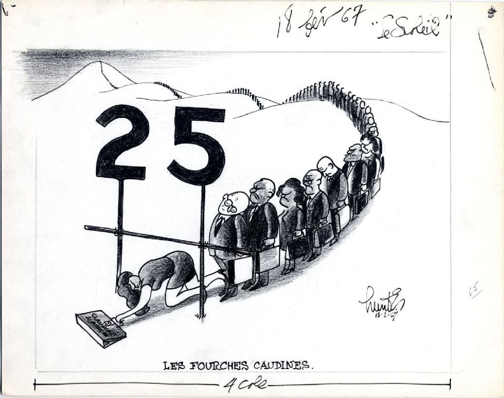 Les fourches caudines, 18 février 1967, Archives nationales à Québec, Fonds Raoul Hunter, (03Q,P716,S1,P67-02-18), Raoul Hunter.