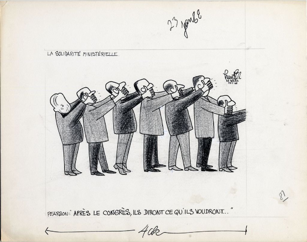 La solidarité ministérielle. Pearson : «Après le congrès, ils diront ce qu'ils voudront…», 23 janvier 1968, Archives nationales à Québec, Fonds Raoul Hunter, (03Q,P716,S1,P68-01-23), Raoul Hunter.