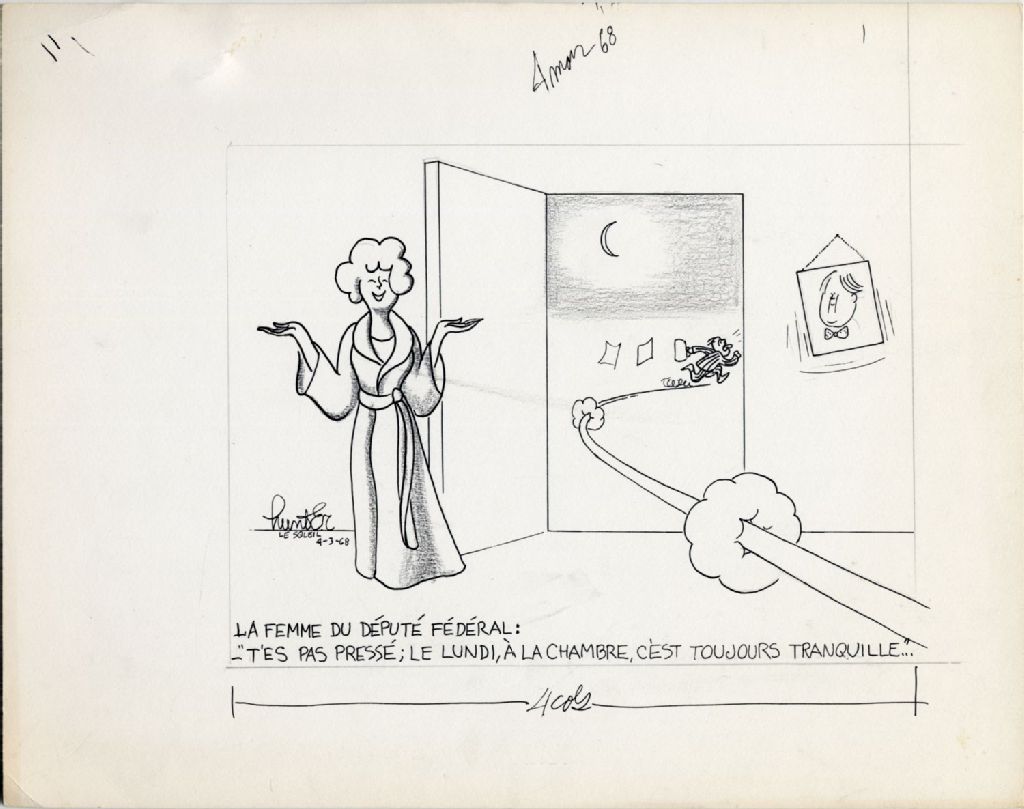 La femme du député fédéral : -«T'es pas pressé; le lundi, à la chambre, c'est toujours tranquille…»