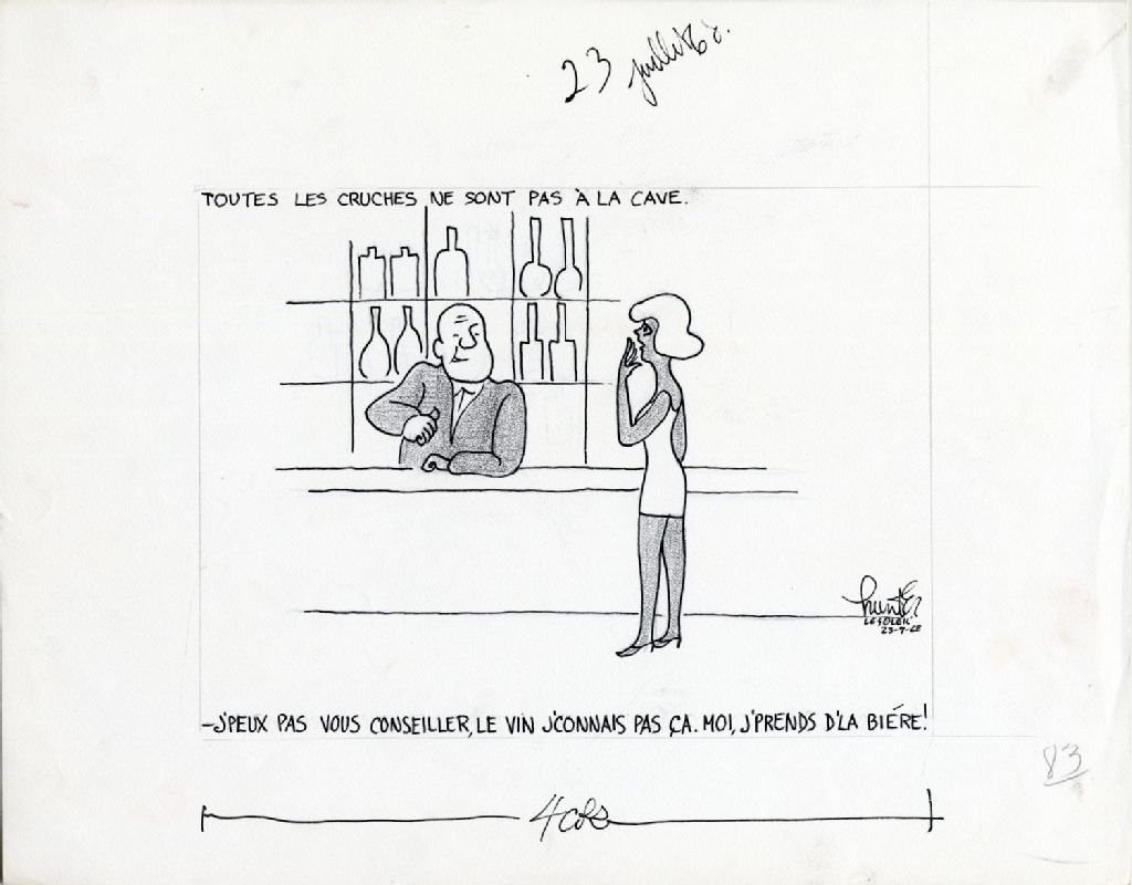 Toutes les cruches ne sont pas à la cave. -«J'peux pas vous conseiller, le vin j'connais pas ça. Moi j'prends d'la bière!»
