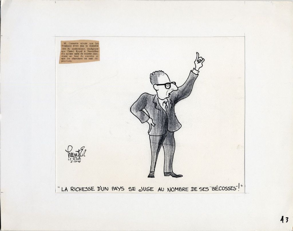 «La richesse d'un pays se juge au nombre de ses "bécosses"!», 2 octobre 1968, Archives nationales à Québec, Fonds Raoul Hunter, (03Q,P716,S1,P68-10-02), Raoul Hunter.