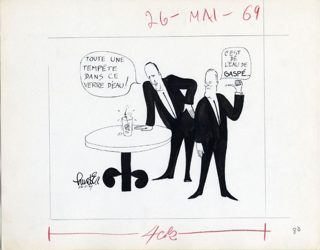 Pierre Laporte : «Toute une tempête dans ce verre d'eau» Jean Lesage : «C'est de l'eau de Gaspé»