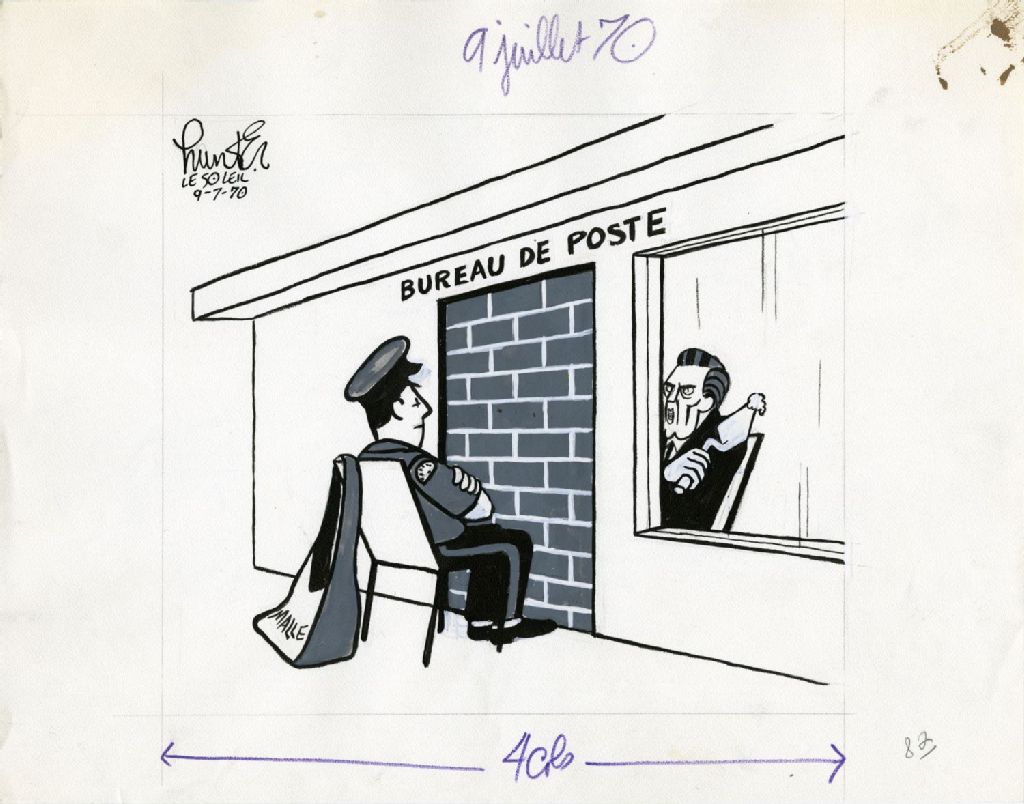 Bureau de poste, 9 juillet 1970, Archives nationales à Québec, Fonds Raoul Hunter, (03Q,P716,S1,P70-07-09), Raoul Hunter.