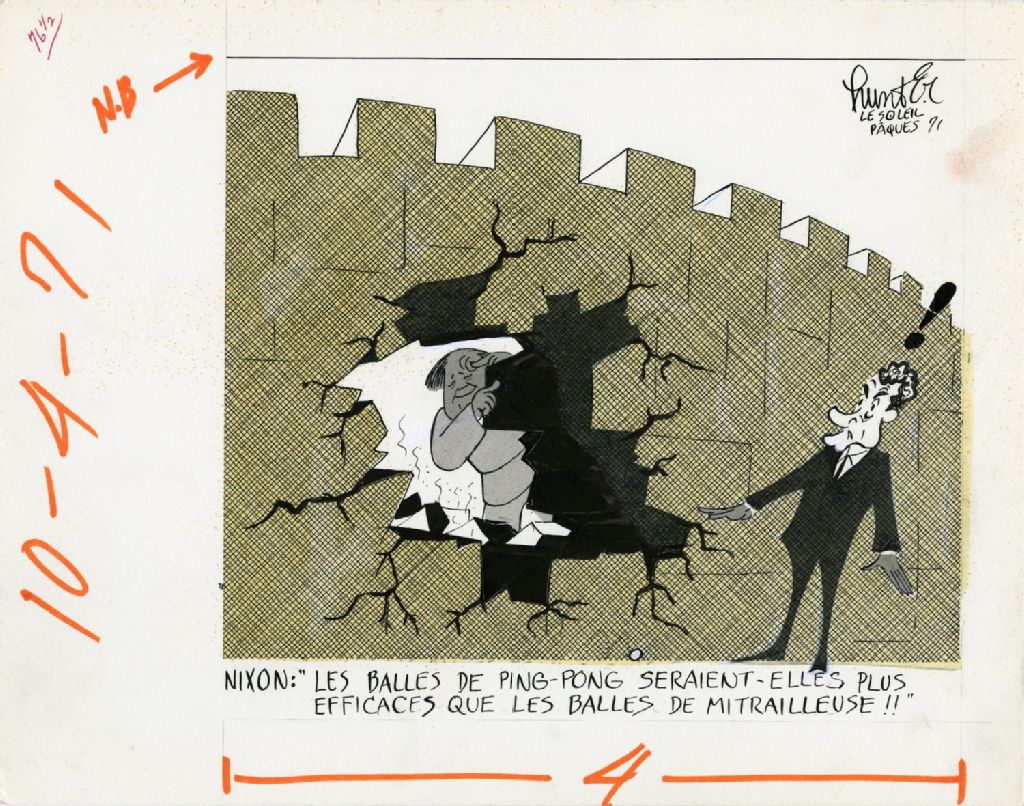 Nixon : «Les balles de ping-pong seraient-elles plus efficaces que les balles de mitrailleuse!!», 10 avril 1971, Archives nationales à Québec, Fonds Raoul Hunter, (03Q,P716,S1,P71-04-10), Raoul Hunter.