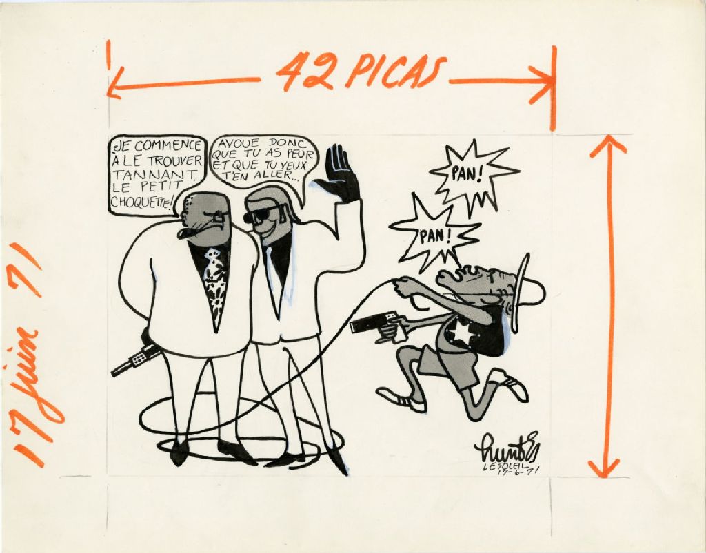 «Je commence à le trouver tannant le petit Choquette!» «Avoue donc que tu as peur et que tu veux t'en aller…», 17 juin 1971, Archives nationales à Québec, Fonds Raoul Hunter, (03Q,P716,S1,P71-06-17), Raoul Hunter.