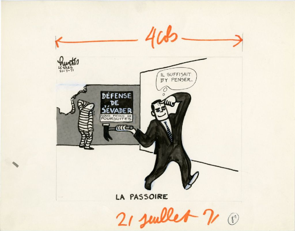 La passoire. «Il suffisait d'y penser…», 21 juillet 1971, Archives nationales à Québec, Fonds Raoul Hunter, (03Q,P716,S1,P71-07-21), Raoul Hunter.