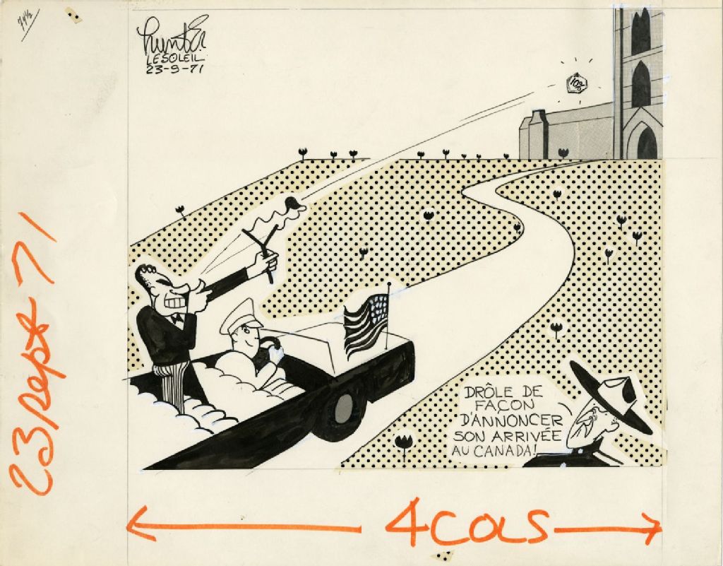 Drôle de façon d'annoncer son arrivée au Canada, 23 septembre 1971, Archives nationales à Québec, Fonds Raoul Hunter, (03Q,P716,S1,P71-09-23), Raoul Hunter.