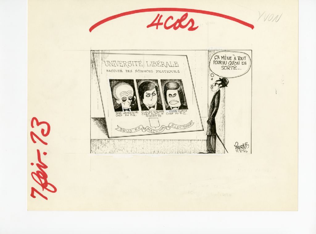 "Ça mène à tout pourvu qu'on en sorte...", 07 février 1973, Archives nationales à Québec, Fonds Raoul Hunter, (03Q,P716,S1,P73-02-07), Raoul Hunter.