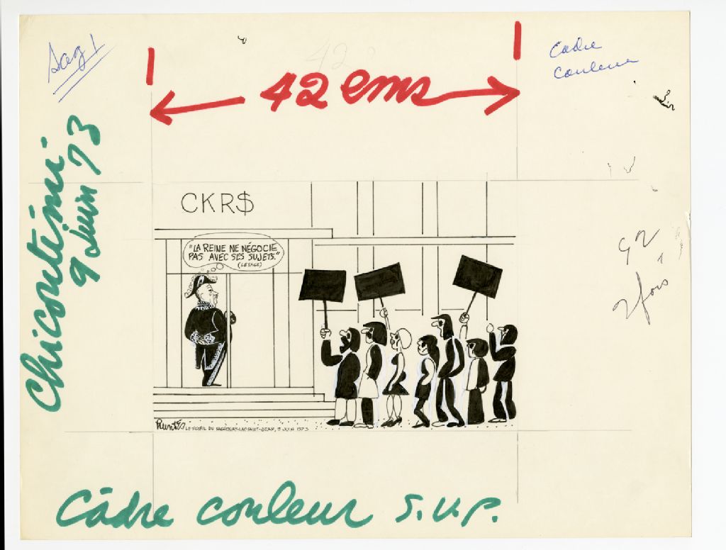 "La Reine ne négocie pas avec ses sujets.", 09 juin 1973, Archives nationales à Québec, Fonds Raoul Hunter, (03Q,P716,S1,P73-06-09-1), Raoul Hunter.