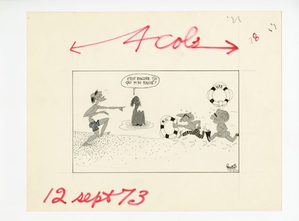 "C'est encore toi qui m'a poussé?", 12 septembre 1973, Archives nationales à Québec, Fonds Raoul Hunter, (03Q,P716,S1,P73-09-12), Raoul Hunter.