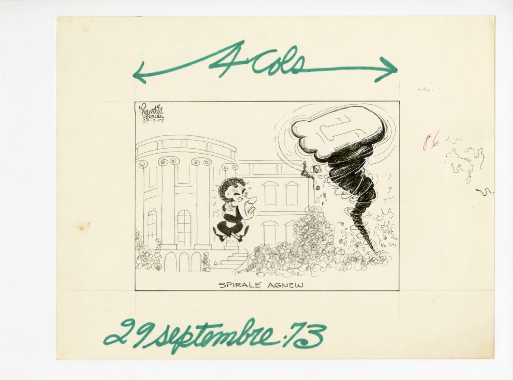 Spirale Agnew, 29 septembre 1973, Archives nationales à Québec, Fonds Raoul Hunter, (03Q,P716,S1,P73-09-29-1), Raoul Hunter.
