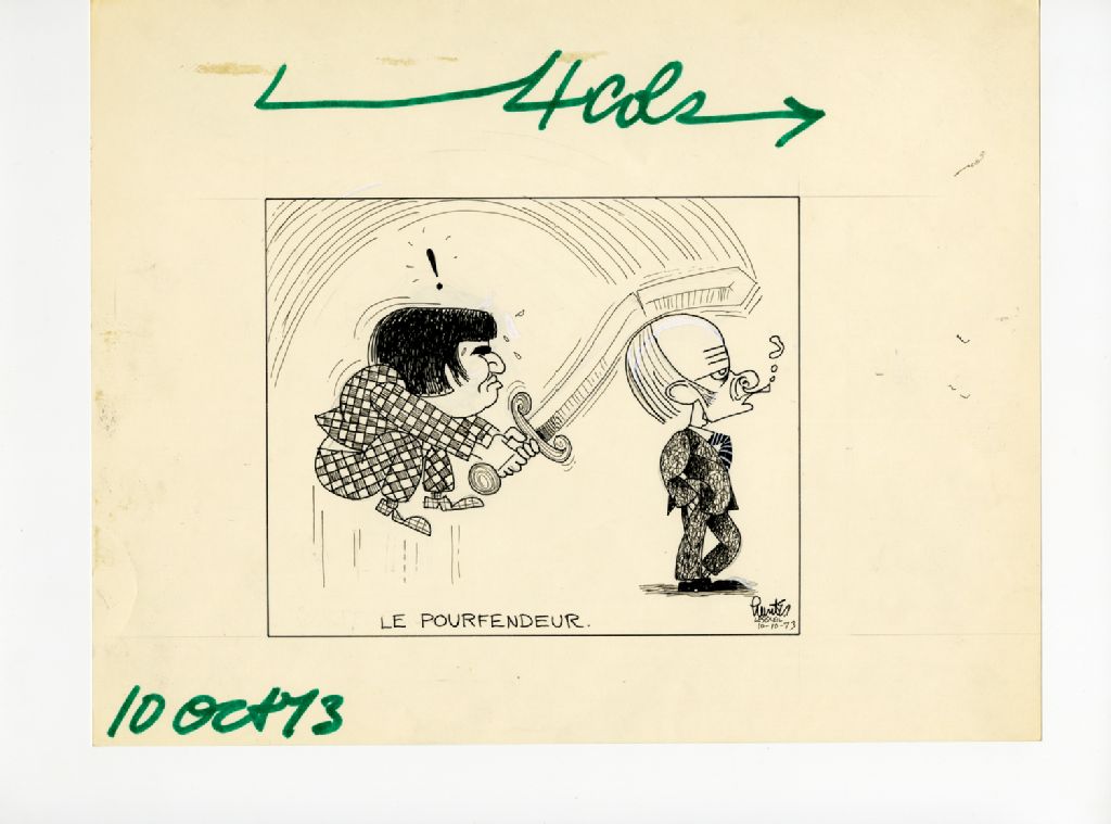 Le pourfendeur, 10 octobre 1973, Archives nationales à Québec, Fonds Raoul Hunter, (03Q,P716,S1,P73-10-10), Raoul Hunter.