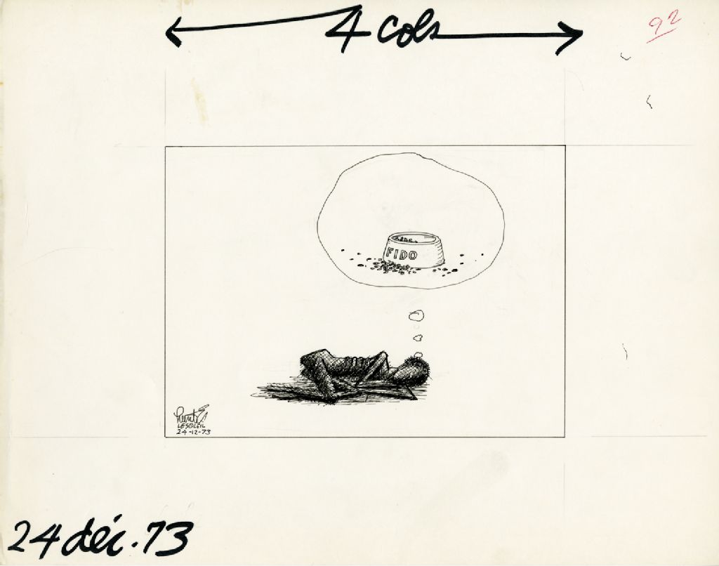 [Une personne soufrant de malnutrition rêve d'un bol de nourriture pour chien]