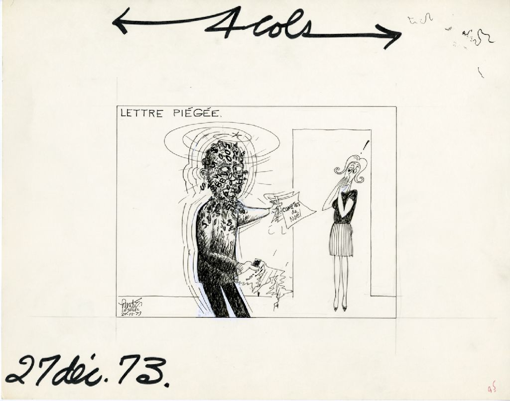 Lettre piégée, 27 décembre 1973, Archives nationales à Québec, Fonds Raoul Hunter, (03Q,P716,S1,P73-12-27), Raoul Hunter.