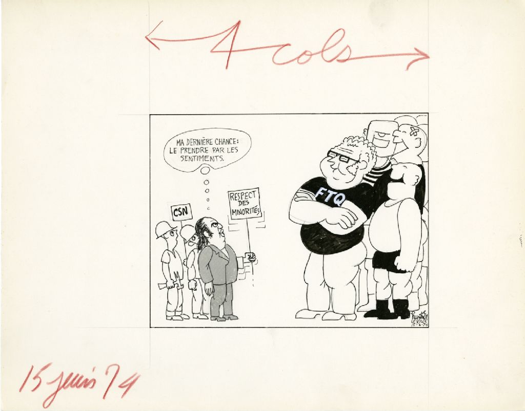 Respect des minorités «Ma dernière chance : le prendre par les sentiments», 15 juin 1974, Archives nationales à Québec, Fonds Raoul Hunter, (03Q,P716,S1,P74-06-15), Raoul Hunter.