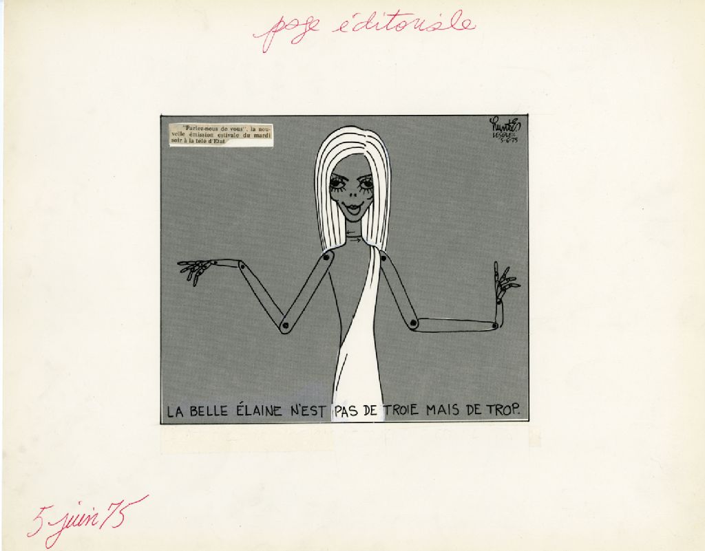 La belle Élaine n'est pas de Troie mais de trop, 5 juin 1975, Archives nationales à Québec, Fonds Raoul Hunter, (03Q,P716,S1,P75-06-05), Raoul Hunter.