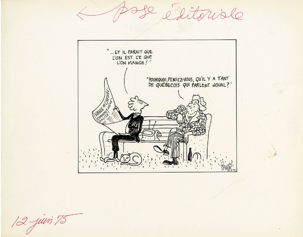 «... et il paraît que l'on est ce que l'on mange!» «Pourquoi, pensez-vous, qu'il y a tant de Québécois qui parlent joual?»