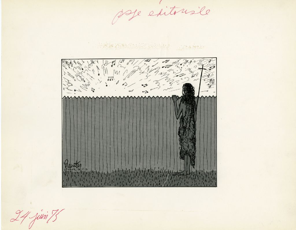 [Saint-Jean-Baptiste regarde par dessus une palissade]