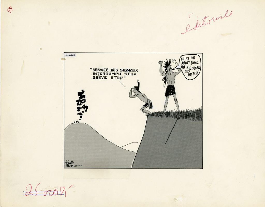 «Service des signaux interrompu stop grève stop» «Ah! Si on avait donc un ministère des Postes!»