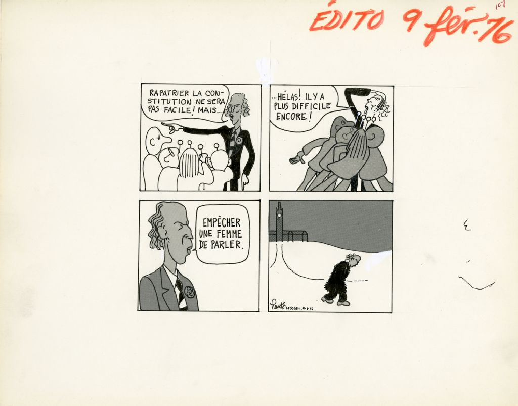 «Rapatrier la constitution ne sera pas facile! mais... hélas! Il y a plus difficile encore! Empêcher une femme de parler.»