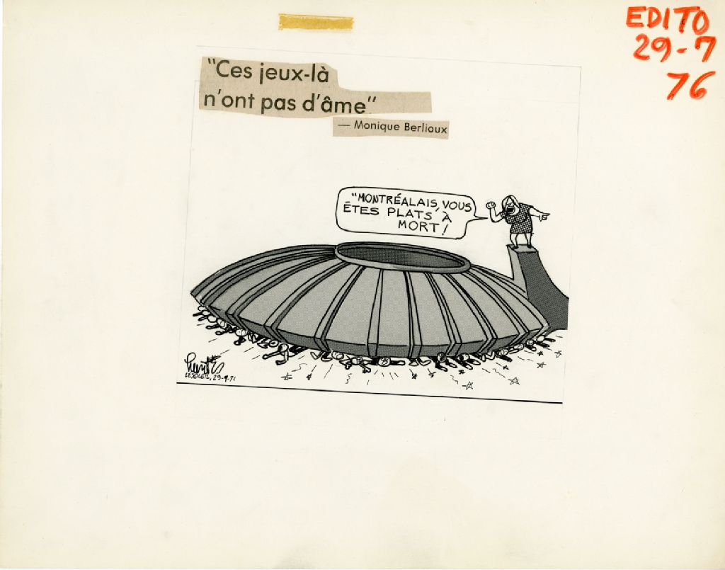 «Montréalais, vous êtes plats à mort!», 29 juillet 1976, Archives nationales à Québec, Fonds Raoul Hunter, (03Q,P716,S1,P76-07-29), Raoul Hunter.