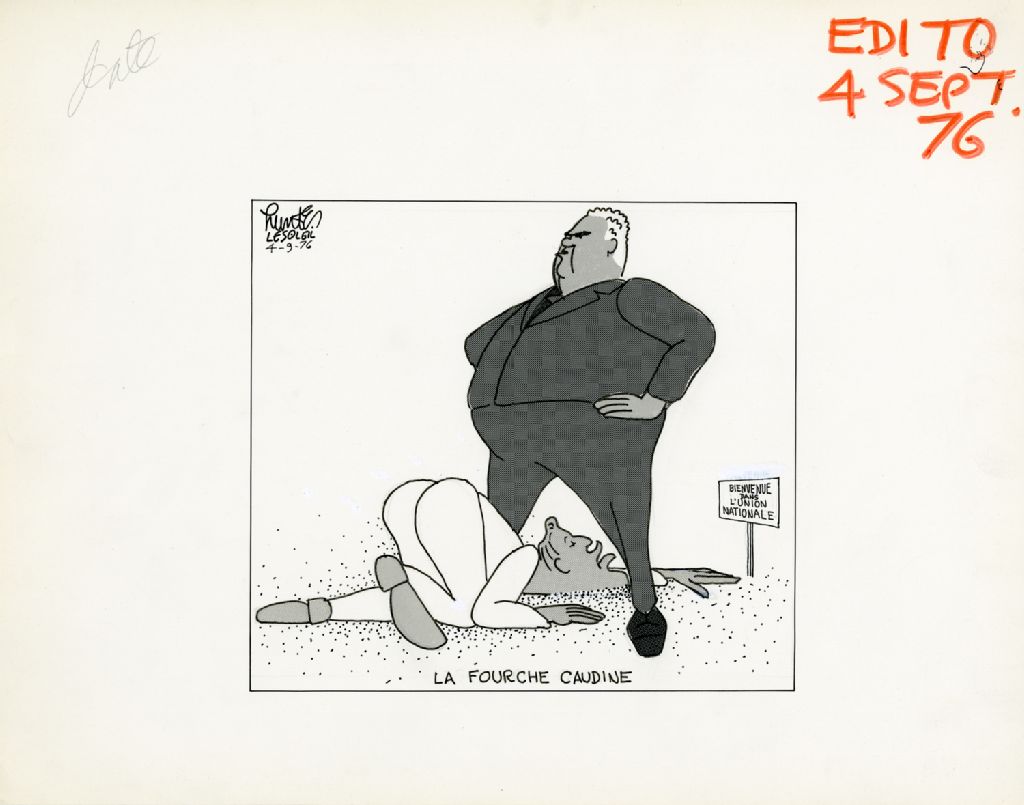 La fourche caudine. Bienvenue dans l'Union nationale, 4 septembre 1976, Archives nationales à Québec, Fonds Raoul Hunter, (03Q,P716,S1,P76-09-04), Raoul Hunter.
