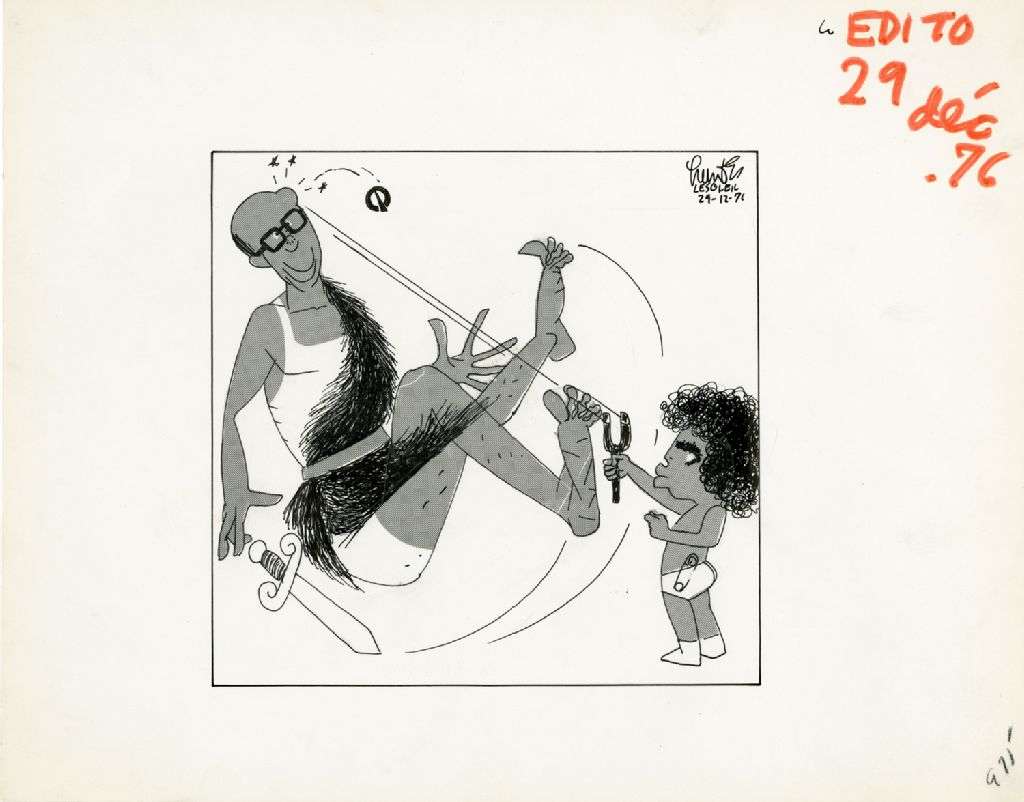 [Claude Charron tire avec un lance-pierre sur la tête de Jean Drapeau]