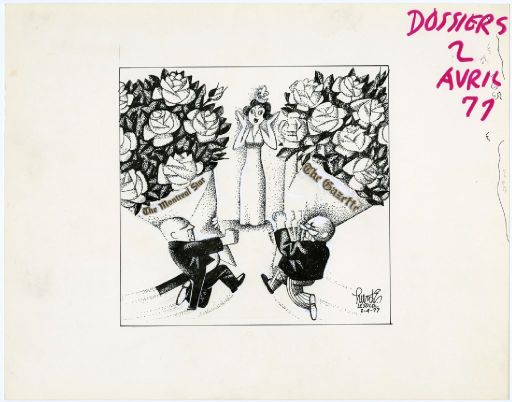 [Une reine se fait offrir des bouquets de fleurs par ''The Montreal Star'' et ''The Gazette'']