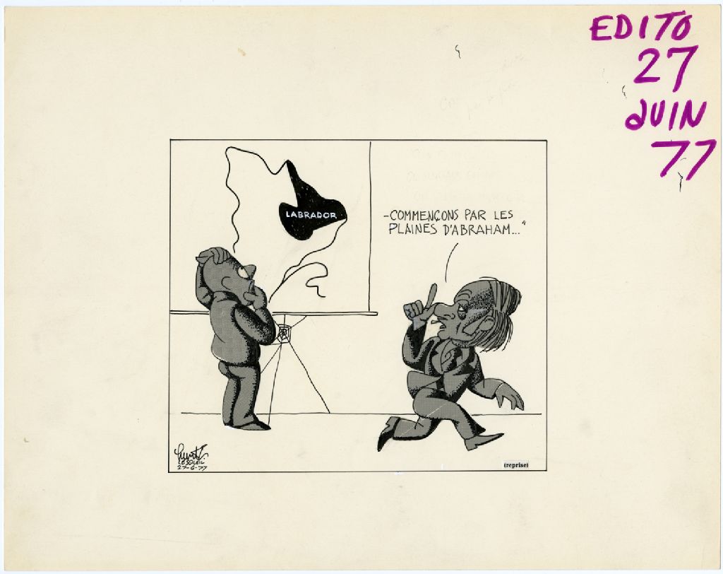 «Commençons par les Plaines d'Abraham...», 27 juin 1977, Archives nationales à Québec, Fonds Raoul Hunter, (03Q,P716,S1,P77-06-27), Raoul Hunter.