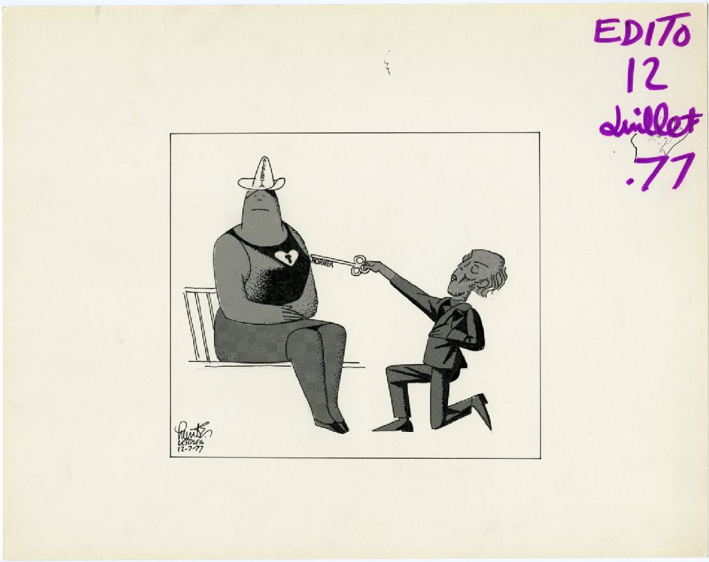 [Pierre-Eliott Trudeau faisant la cour à une femme qui a un chapeau où on peut lire ''Alberta'']