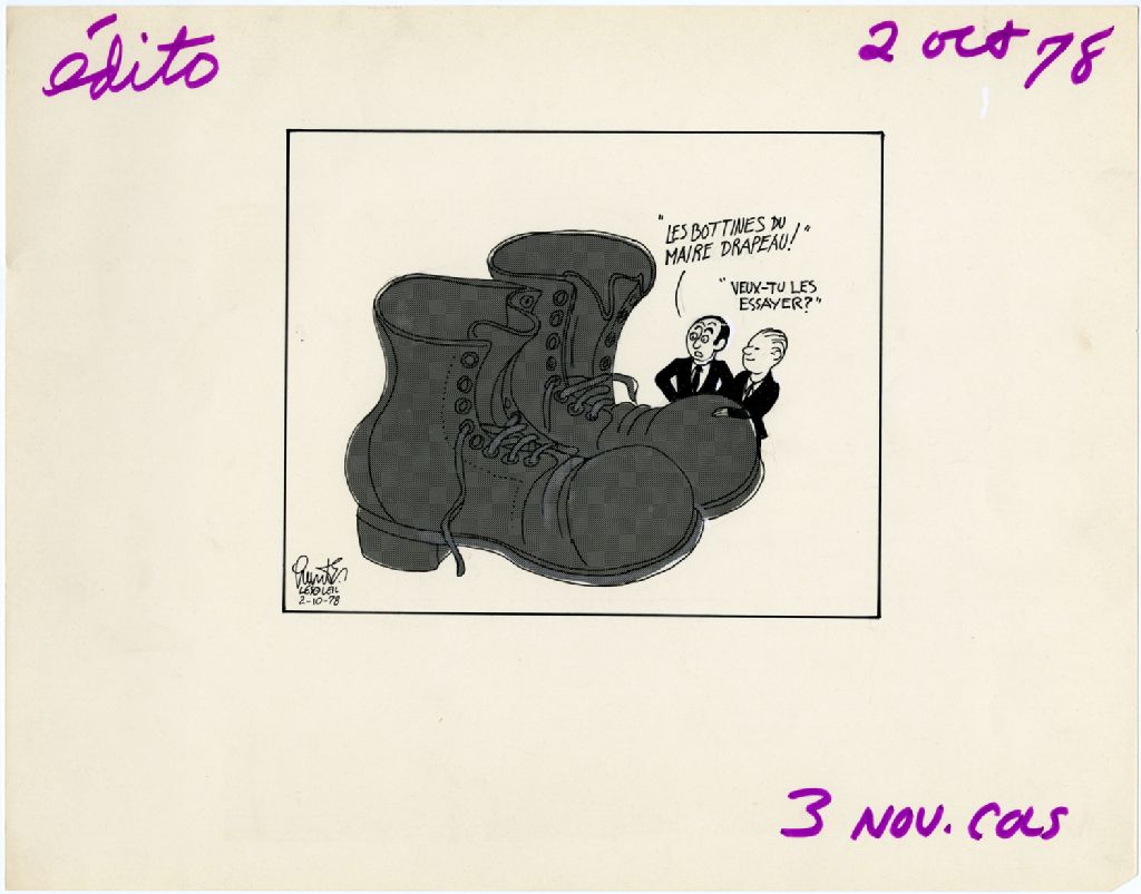 «Les bottines du maire Drapeau!» «Veux-tu ls essayer?»
