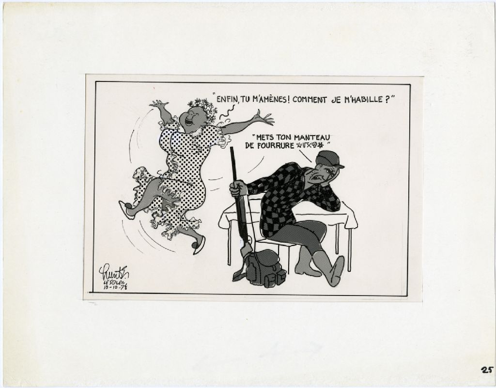 «Enfin, tu m'amènes! Comment je m'habille?» «Mets ton manteau de fourrure $%?*&»