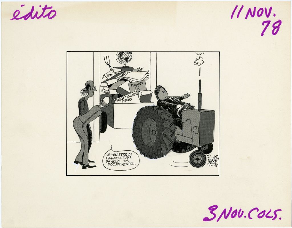 «Le ministre de l'Agriculture ramène sa documentation», 11 novembre 1978, Archives nationales à Québec, Fonds Raoul Hunter, (03Q,P716,S1,P78-11-11), Raoul Hunter.