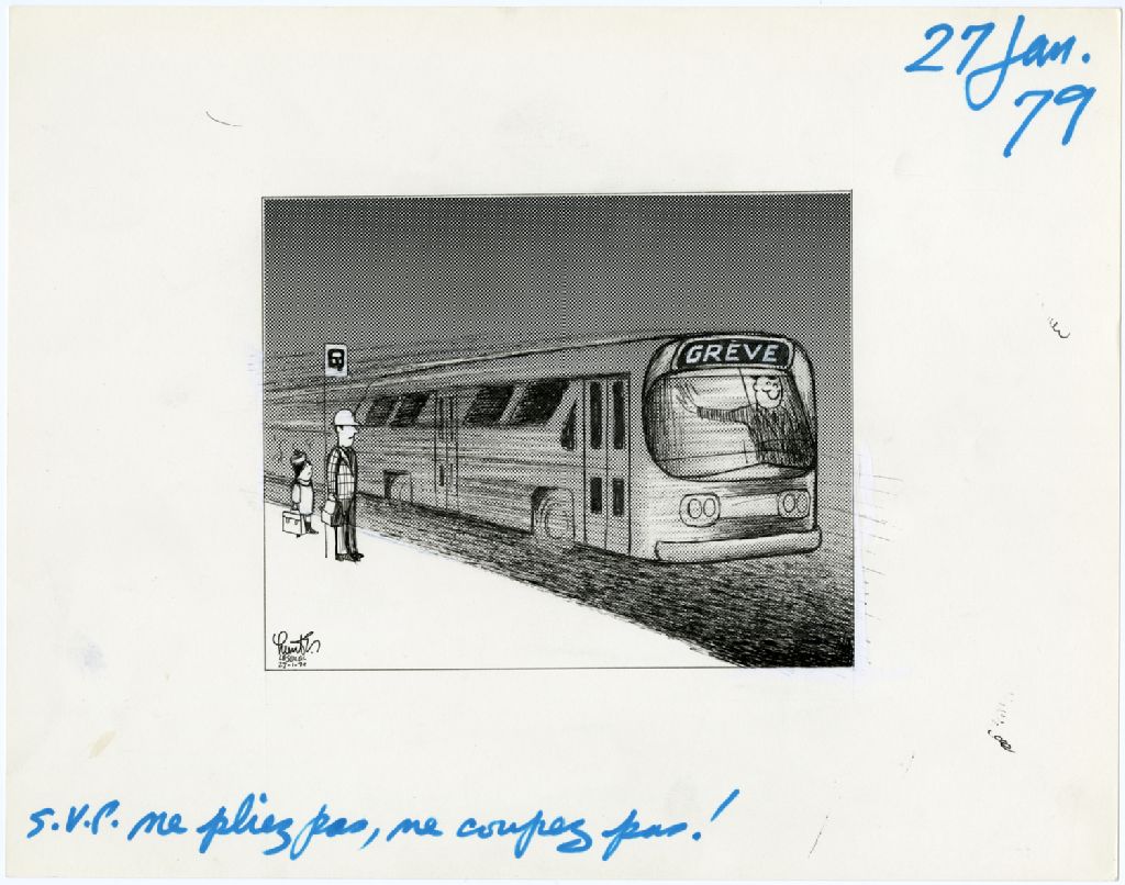[Un autobus passe sans s'arrêter devant un citoyen qui attends], 27 janvier 1979, Archives nationales à Québec, Fonds Raoul Hunter, (03Q,P716,S1,P79-01-27-1), Raoul Hunter.