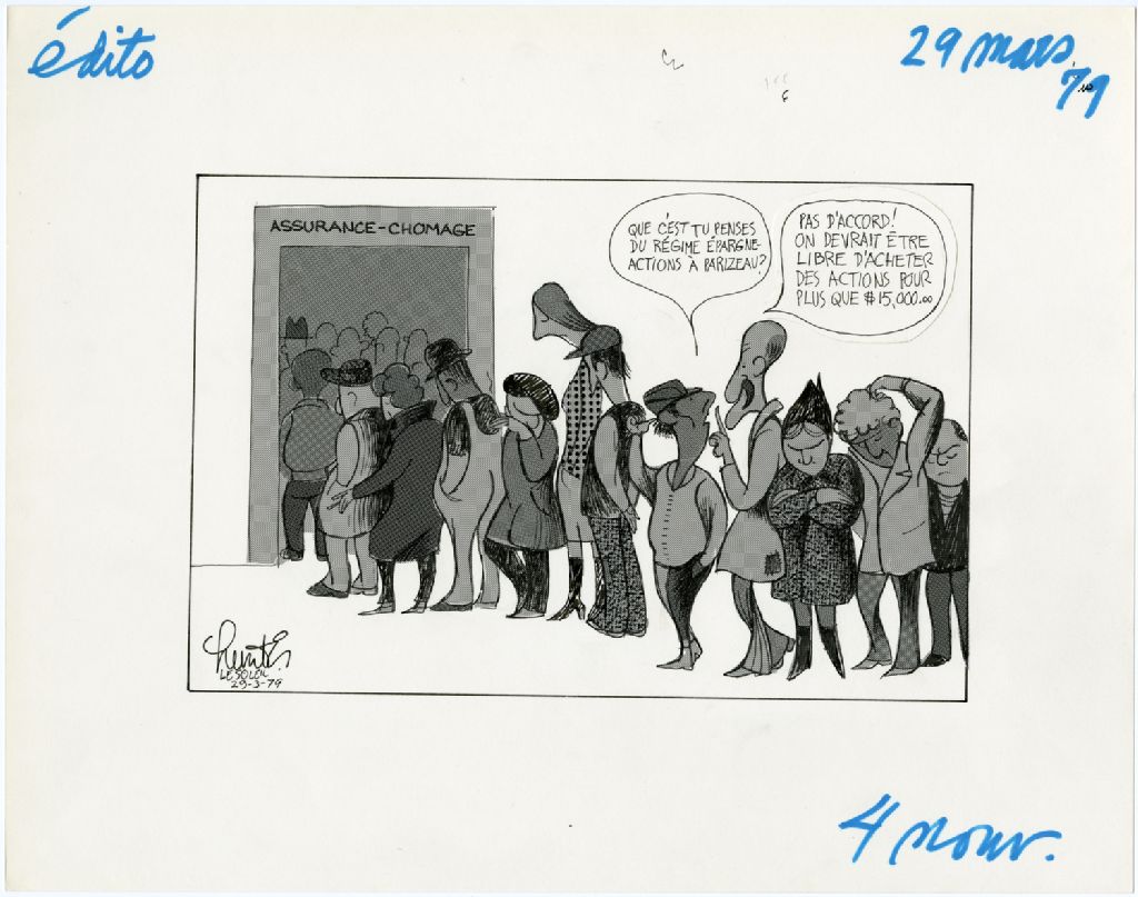 «Qu'est-ce que tu penses du régime épargne-actions à Parizeau?» «Pas d'accord! On devrait être libre d'acheter des actions pour plus que $15,000.00»