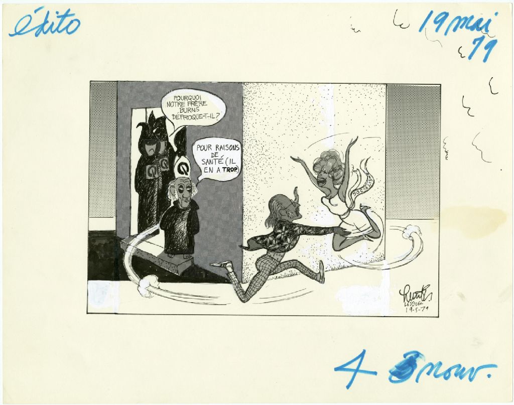 «Pourquoi notre frère Burns défroque-t-il?» «Pour raisons de santé (il en a trop).»