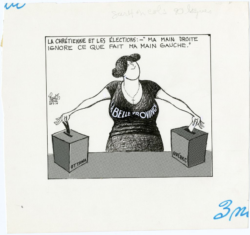 La chrétienne et les élections : «Ma main droite ignore ce que fait ma main gauche», 28 mai 1979, Archives nationales à Québec, Fonds Raoul Hunter, (03Q,P716,S1,P79-05-28-1), Raoul Hunter.