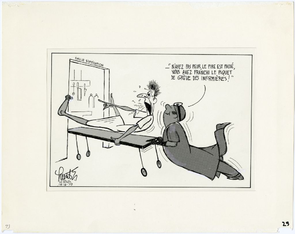 «N'ayez pas peur, le pire est passé, vous avez franchi le piquet de grève des infirmières!», 14 juin 1979, Archives nationales à Québec, Fonds Raoul Hunter, (03Q,P716,S1,P79-06-14), Raoul Hunter.