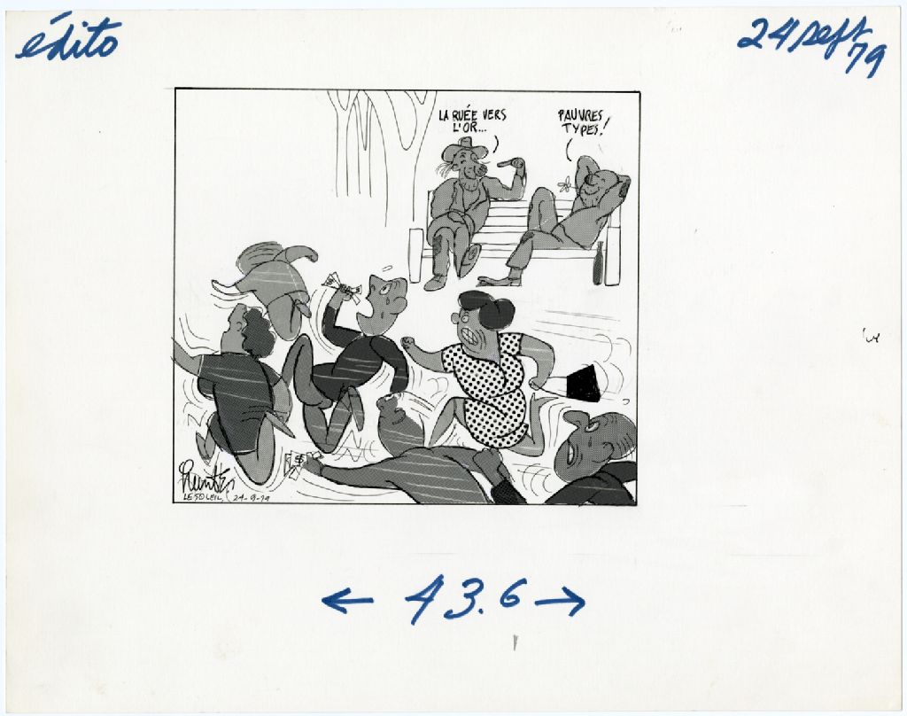 «La ruée vers l'or...» «Pauvres types!», 24 septembre 1979, Archives nationales à Québec, Fonds Raoul Hunter, (03Q,P716,S1,P79-09-24), Raoul Hunter.