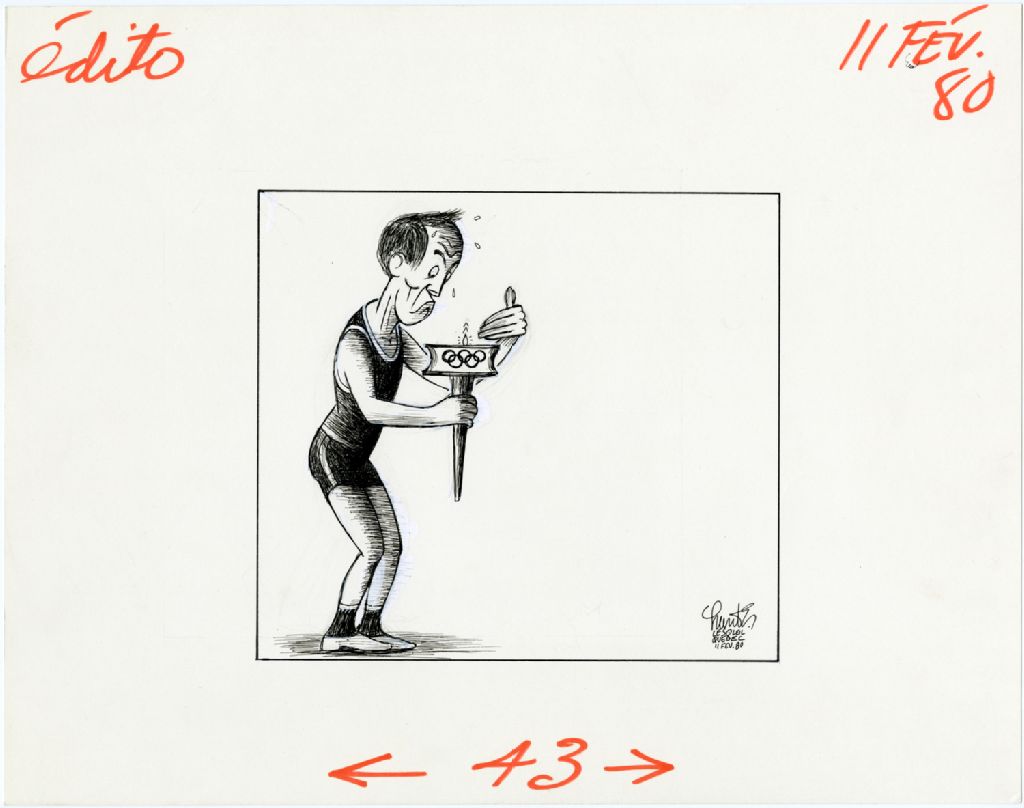 [Un athlète protège la flamme olympique de sa main]
