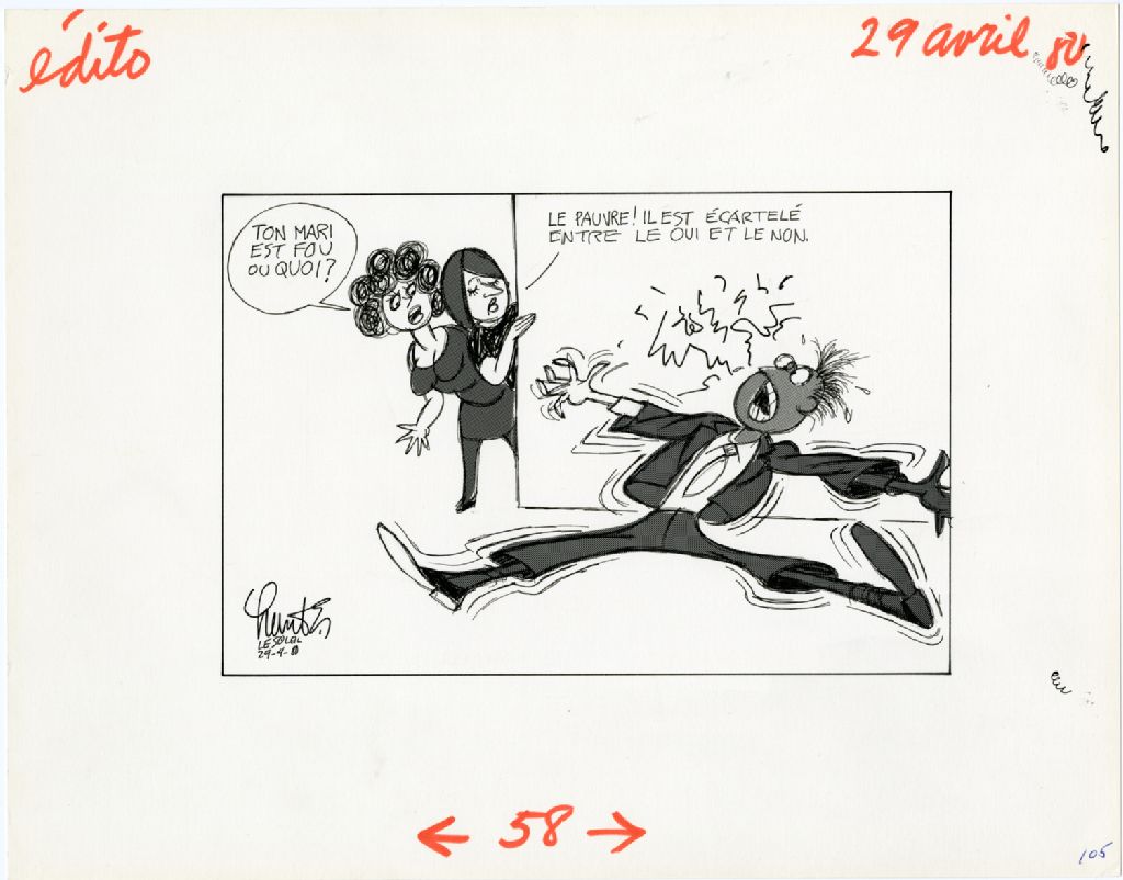 «Ton mari est fou ou quoi?» «Le pauvre! Il est écartelé entre le Oui et le Non.»